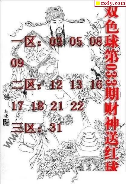 福彩双色球2026年033期财神送红球图谜